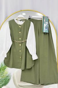 LÜLE TAŞ DETAYLI YELEK PANTOLONLU KADIN TAKIM