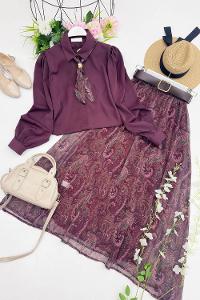 TAKIM İÇERİĞİ GÖMLEK FULAR ETEK VE KEMERDİR