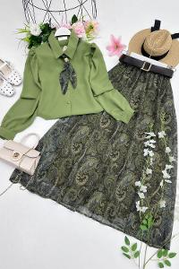 TAKIM İÇERİĞİ GÖMLEK FULAR ETEK VE KEMERDİR