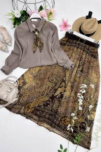 TAKIM İÇERİĞİ GÖMLEK FULAR ETEK VE KEMERDİR